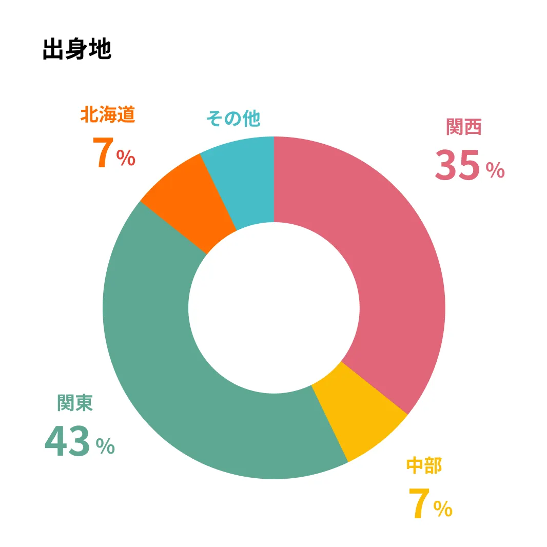 関西、関東を中心にさまざまな地域出身のメンバーがいます