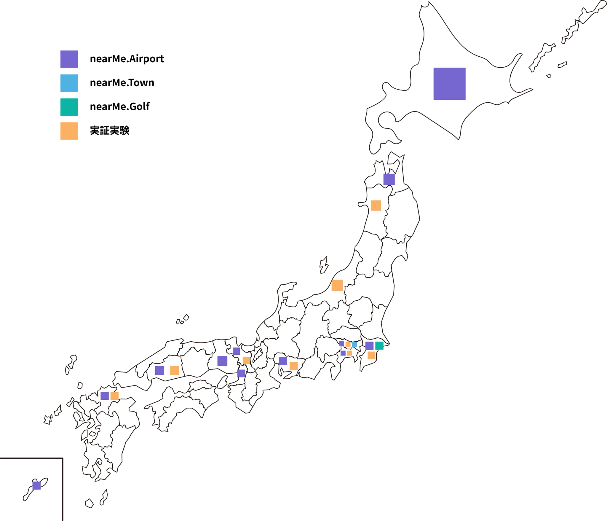 「NearMe | ニアミー」は車両をシェアすることで、それぞれの目的地にお得に移動できるシャトルサービスです。現在は空港、ゴルフ場、街中、通勤の移動をメインとしていますが、その他地域の交通問題の解決などさまざまな機会を模索しています。